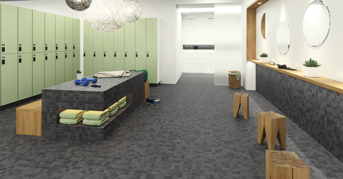 Basic Stone design was inspired by the structure of slate. The ceramic surface of the 2″x2″ unglazed porcelain stoneware mosaic with Hytect coating represents the theme of slate through a relief mix combined with subtle graphics in a modern yet durable manner. Fine shimmering highlights and subtle color contrasts support the stony character of the surface. The color range is based on the classic natural slate tones.