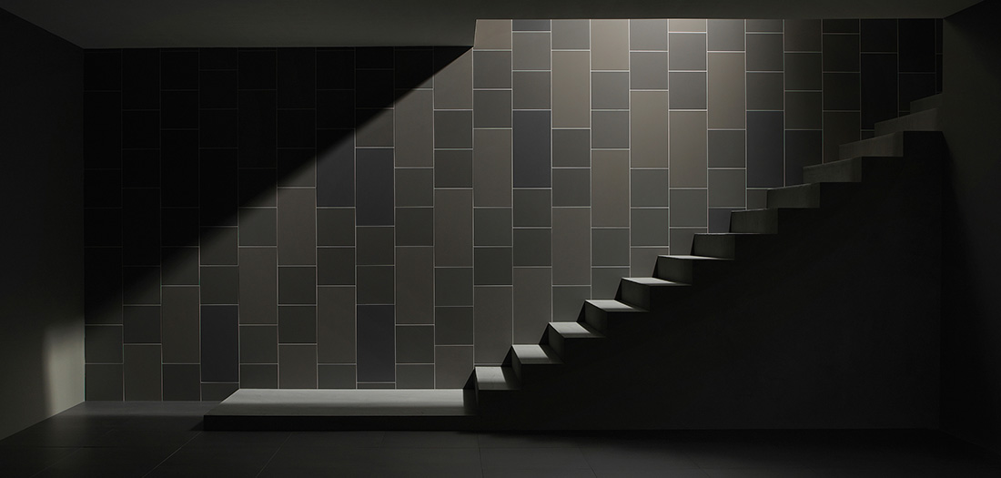 A combination of tones, gloss levels, and sizes in a single ceramic wall. Harmonious spaces can be created through the careful selection of tiles. Murals Blend consists of ten interconnected color groups. These groups differ in expressivity, but share the same soft, stone matt glazing. Each color group consists of four colour tones.