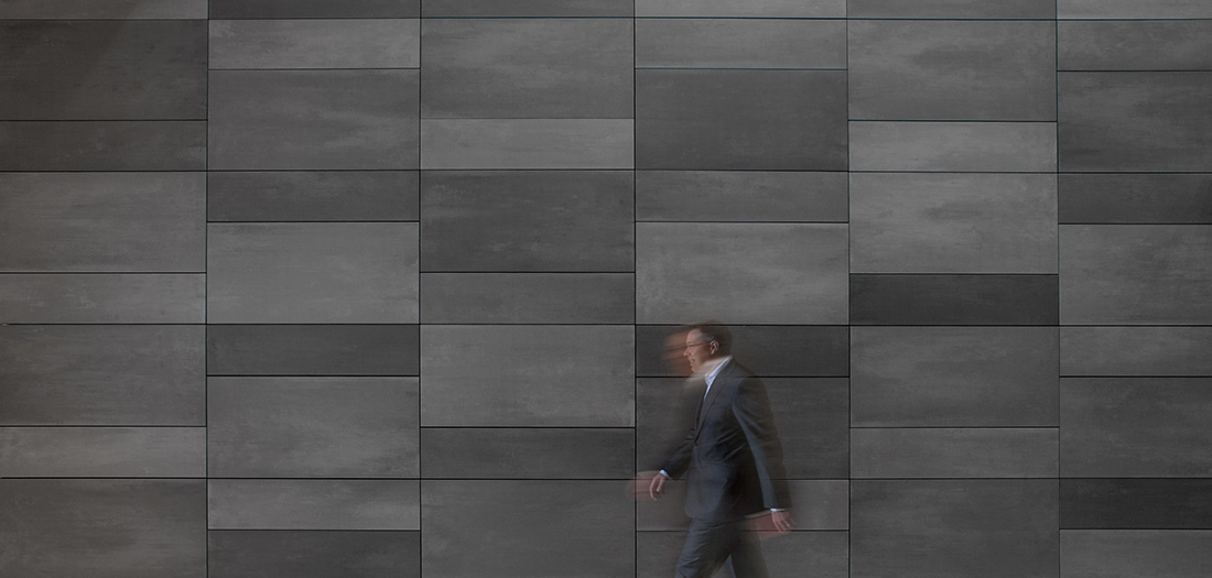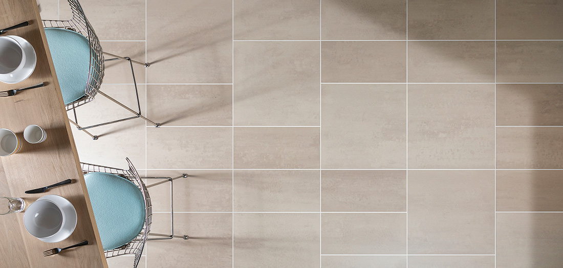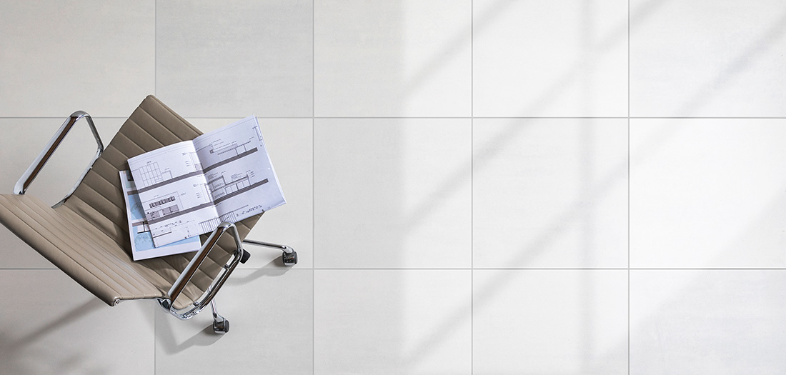 Terra Tones consists of eight basic tiles in the colors of cool porcelain white, mid warm grey, dark grey brown, light beige, grey green, mid grey, anthracite, and cool black. Each basic tile forms a lively set with a lighter and darker variant, which leads to a subtle difference in shading between the tiles. The combination of tiles brings walls and floors to life.