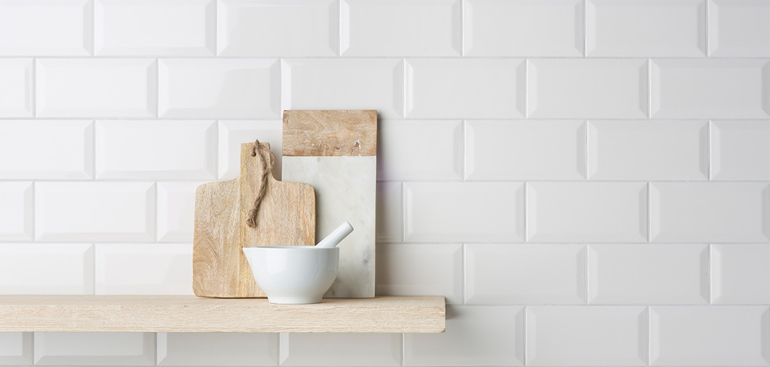 These classic, glossy wall tiles with a distinctive facet edge are an ode to Parisian metro stations.