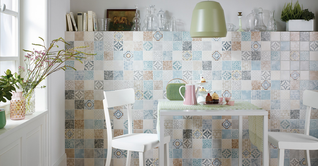 Inspired by the patterns of historic tiles from various countries, Pattern combines boldly colorful elements with gentle nuances, and large ornamentations with small ones. The patterns are slightly disrupted, attributing the mix a soft used look, optical depth and a charming level of naturalness.