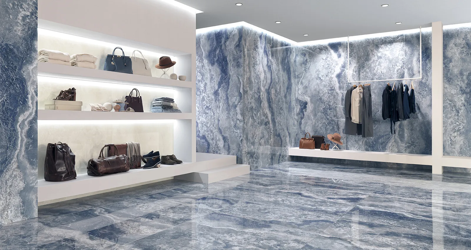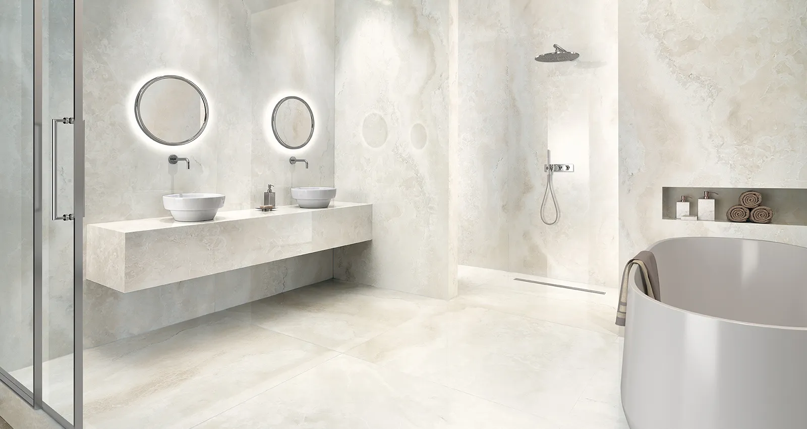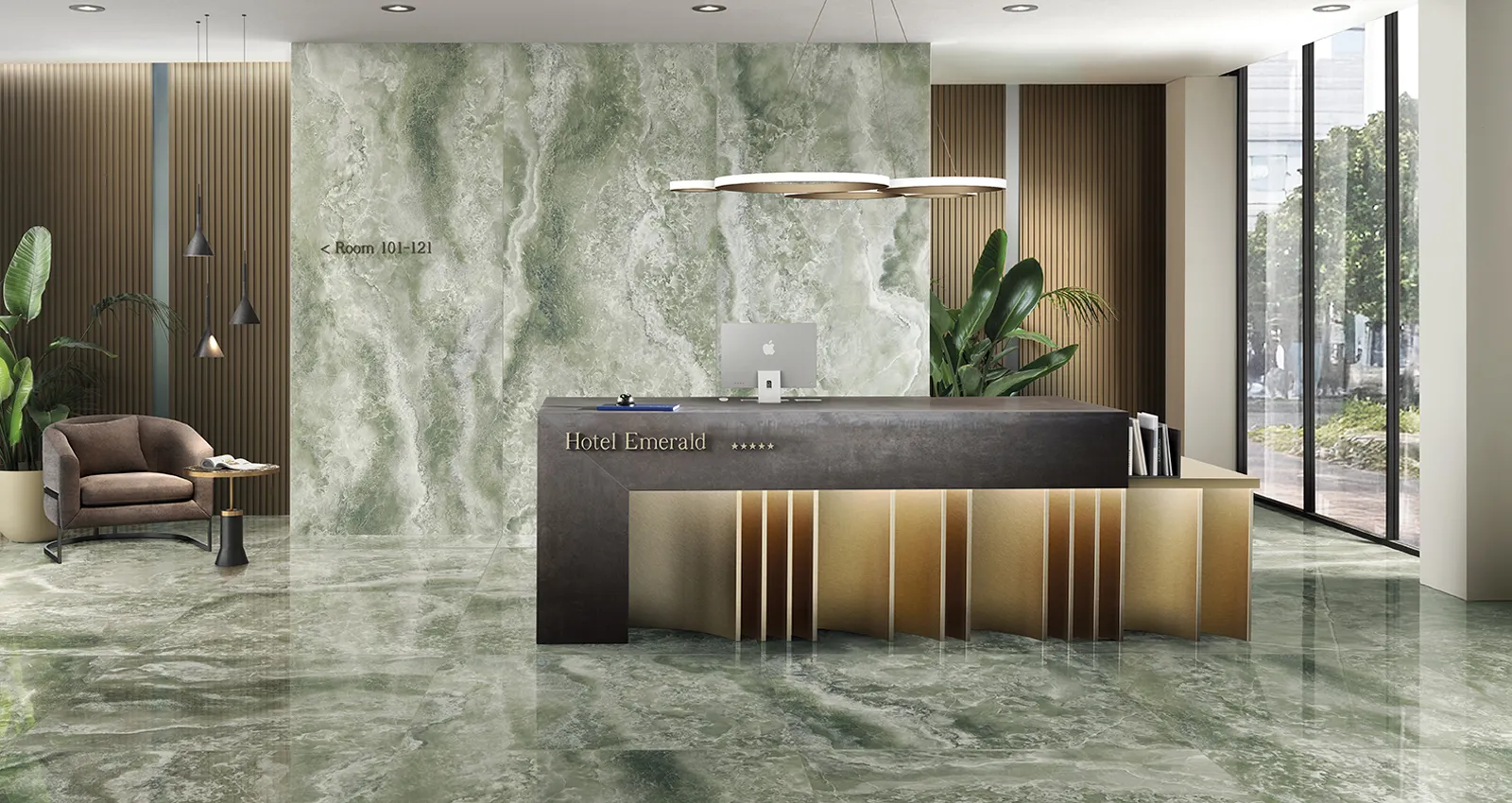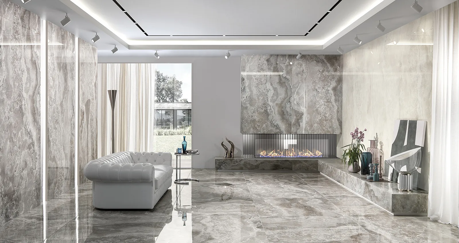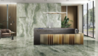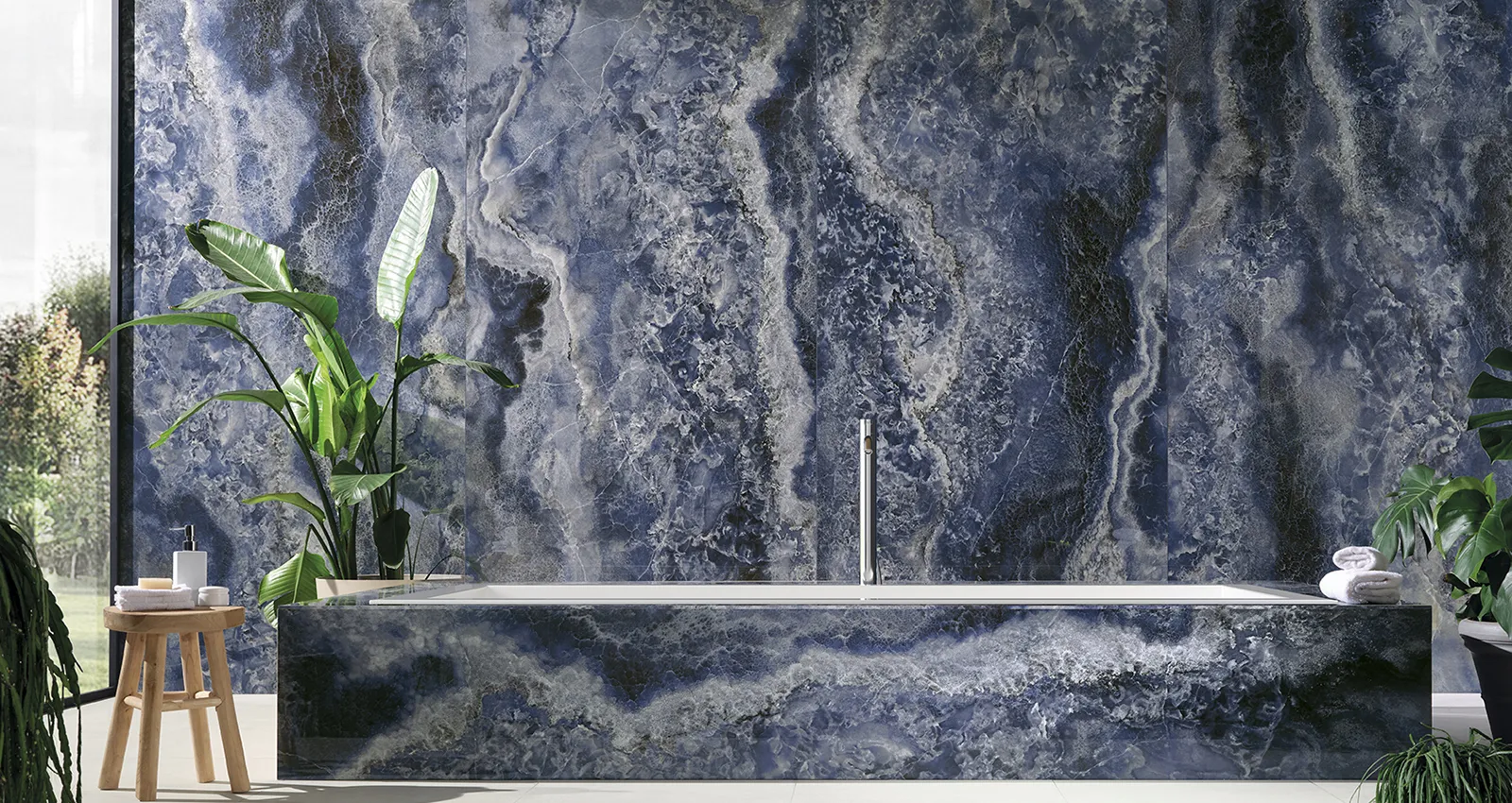 Combining the movement of onyx with Tagina’s new Diamond Shard Technology creates a surface that is truly special. The refractive microcrystals combined with the polishing of the surface create a depth that we’ve never seen before in a porcelain.
