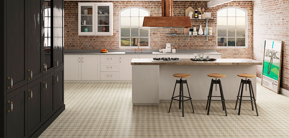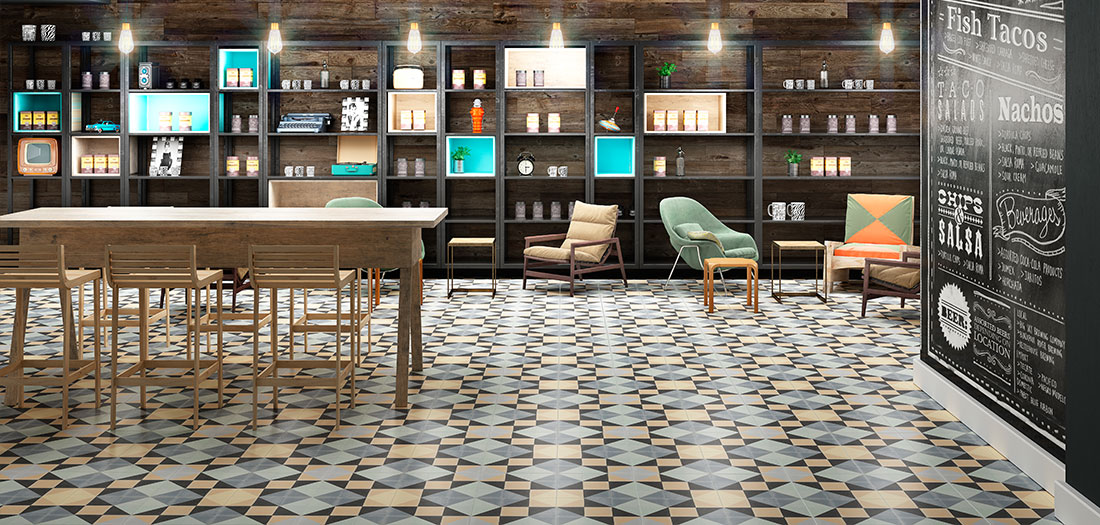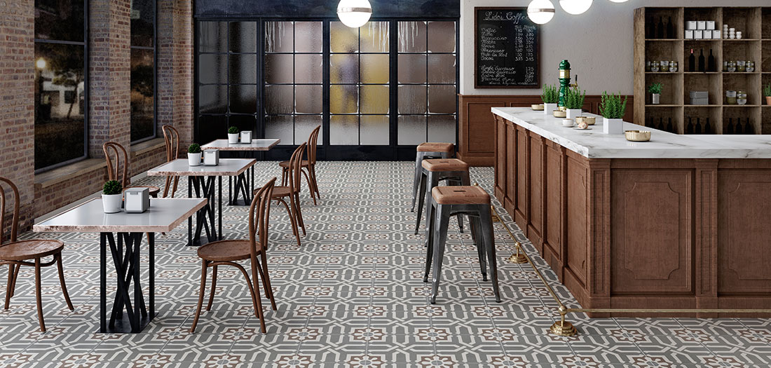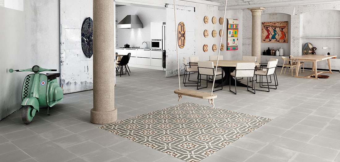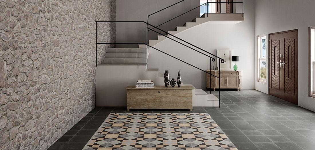I want to abolish time, especially in the contemplation of architecture. Designed to emulate patterned cement tile with the advantages of porcelain. Traditionally, encaustic tiles are crafted with mineral pigments hydraulically pressed into the surface to become part of the tile. As they are created by craftsmen they have imperfections that add to their beauty and make each piece unique. Cement tiles have high water absorption levels and low resistance to abrasion, making them a tile requiring ongoing maintenance. The Encaustic series provides the look of a cement tile, complete with intentional imperfections to add to the realism, but with the durability of a porcelain. No sealing is required and they can withstand both residential and light commercial traffic.